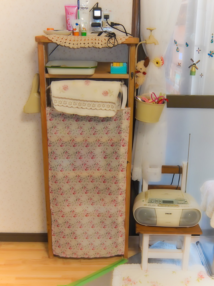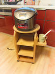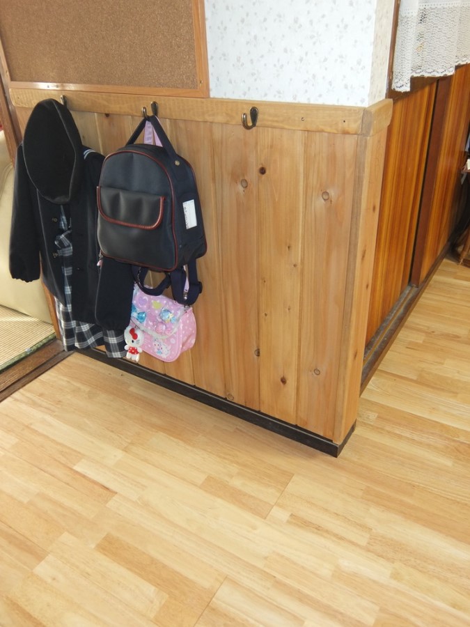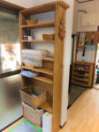 みんなが集まるダイニング 何かと物が集まり テーブルの上に積み重なっていた そこで、ダイニング収納を作る事に 棚は可動式なので入れる物により 高さを変えられます 金物屋さんで見つけた棚柱にフック これは重宝します これですっきり収納でき、 取り出したい時にすぐに見つかるかな 収納付炊飯器の台はキャスター付 この間作ったベンチも収納も 一年前に伐採した家の前のヒバや杉を 製材した板で作ったと息子に話したら 驚いてました