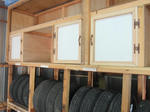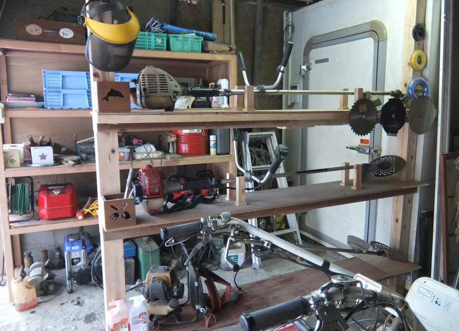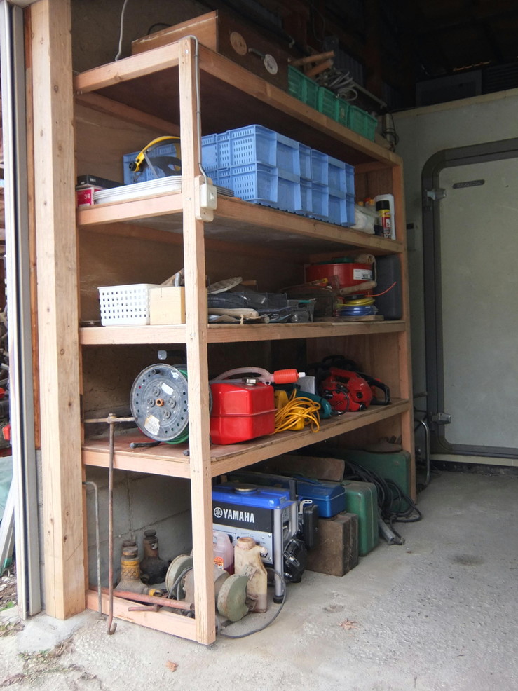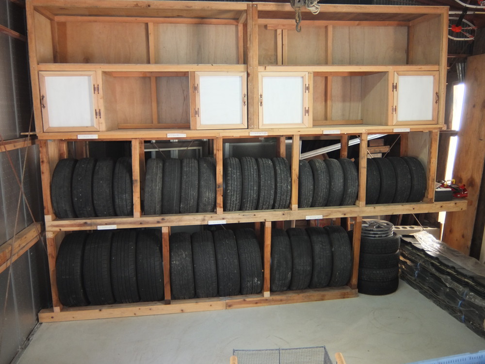 物が片付かない、 欲しいときに見つからない... という事のないように。 今年は一念発起して機能的な収納作り、 題して『収納大作戦』に挑戦してみようと決めました。 2015DIY初めとなったのが、「1.タイヤ収納」 わが家は車が5台だけれど、その他に娘家族の2台+1台 の8台分の収納が必要。 年末年始の休日利用して作りました。 タイヤの上部は戸棚付収納にしました。 タイヤはもちろん、収納箇所にはタグを付けて、 何が収納してあるか一目瞭然で分かるようにしました。 タイヤ収納が出来た事で、収納スペースも半分以下に なりました。